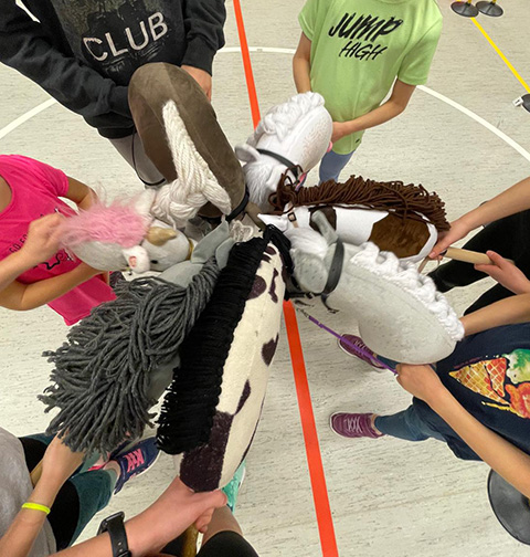 Unsere Hobby Horsing-Gruppe richtet sich an Kinder und Jugendliche, die Freude an Bewegung, Fantasie und Pferden haben. Die Aktivitäten umfassen ein abwechslungsreiches Programm aus Geschicklichkeitsübungen, Hindernisparcours und Choreografien. Dabei werden nicht nur die körperlichen Fähigkeiten wie Koordination und Balance geschult, sondern auch die Vorstellungskraft und Kreativität gefördert.