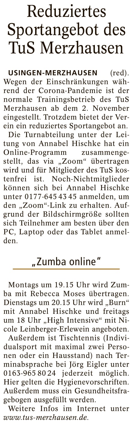 Reduziertes Sportangebot des TuS Merzhausen