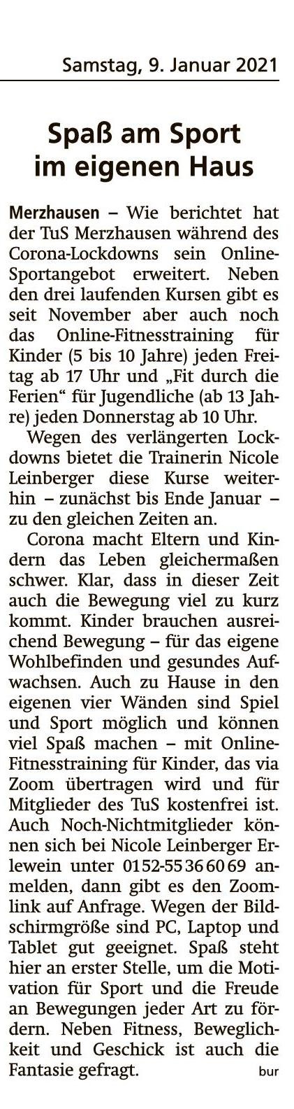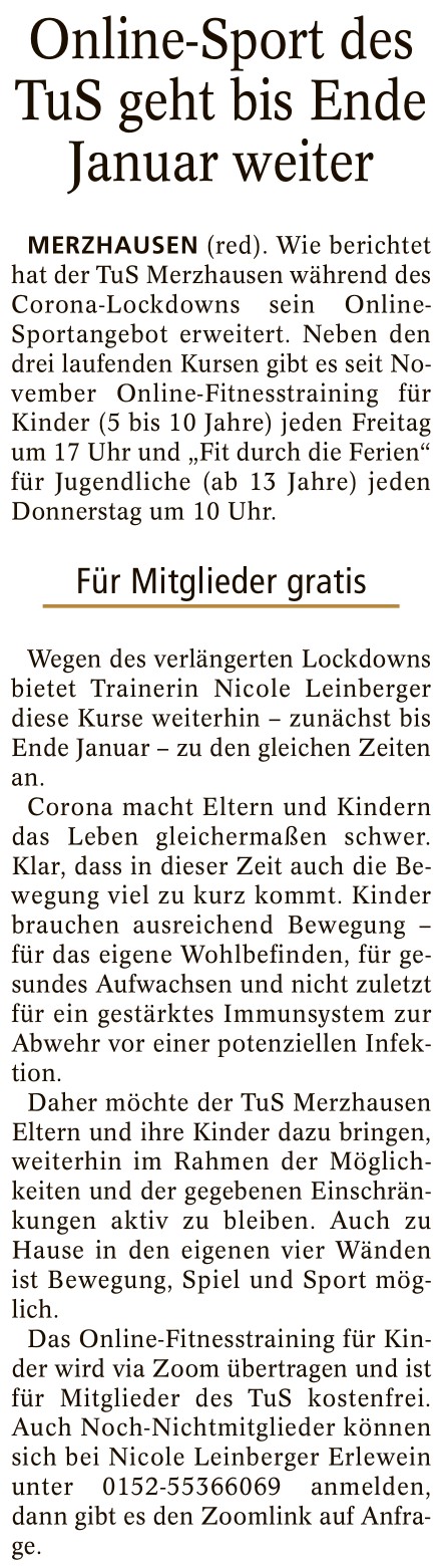 Online-Sport des TuS geht bis Ende Januar weiter