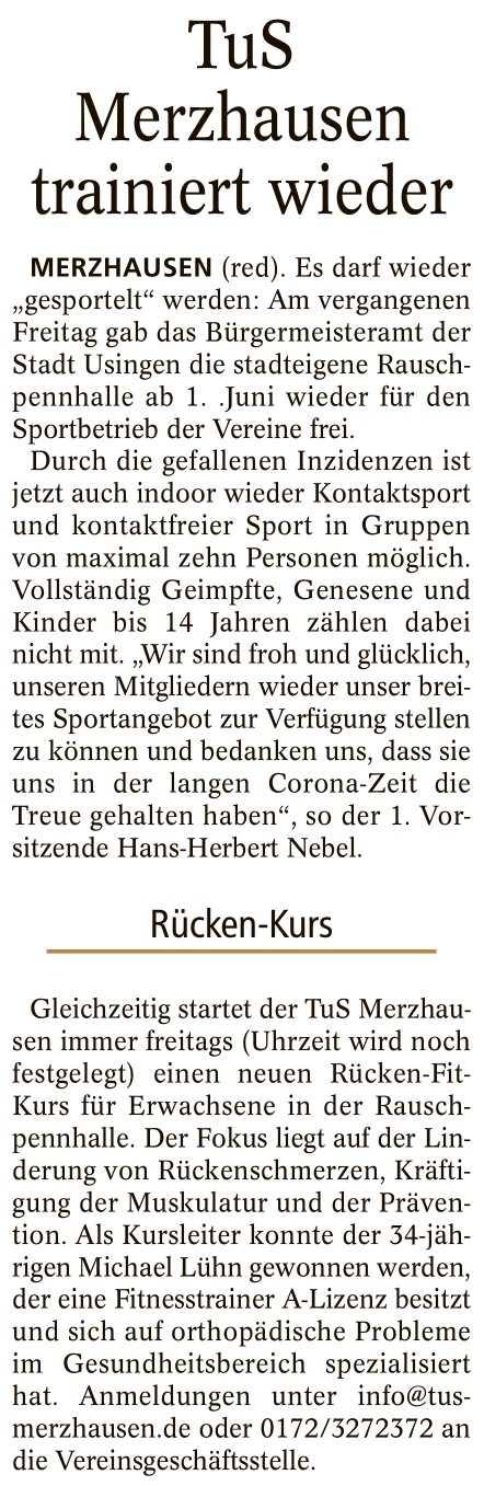 neuer Rückenkurs beim TuS Merzhausen