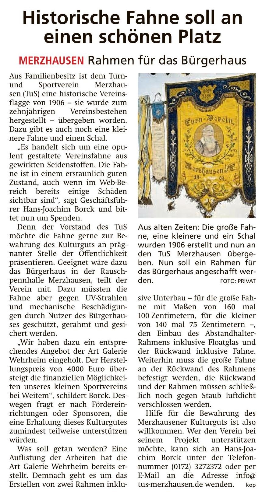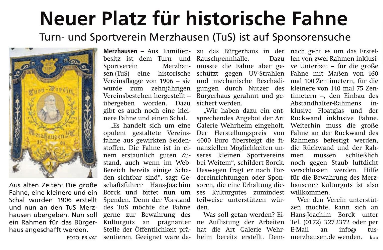 Alte Vereinsfahne hat ein neues Zuhause