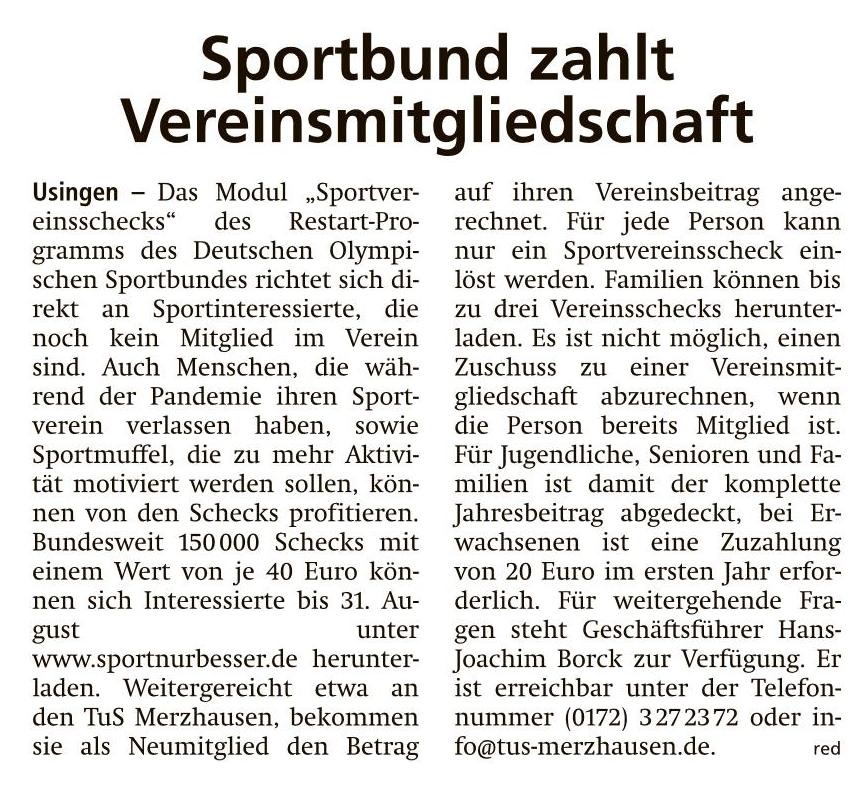 Sportbund zahlt Vereinsmitgliedschaft