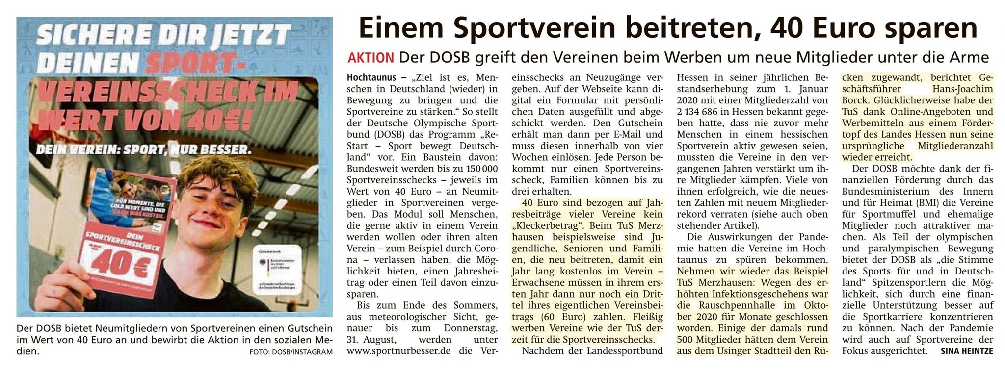 Einem SPortverein beitreten, 40 Euro sparen