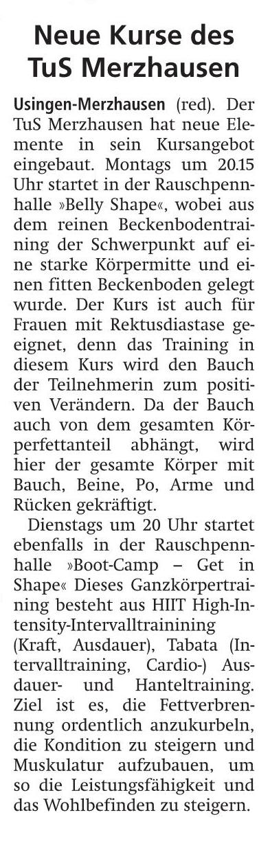 neue Kurse des TuS Merzhausen