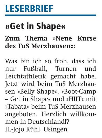 Leserbrief zu Get in Shape