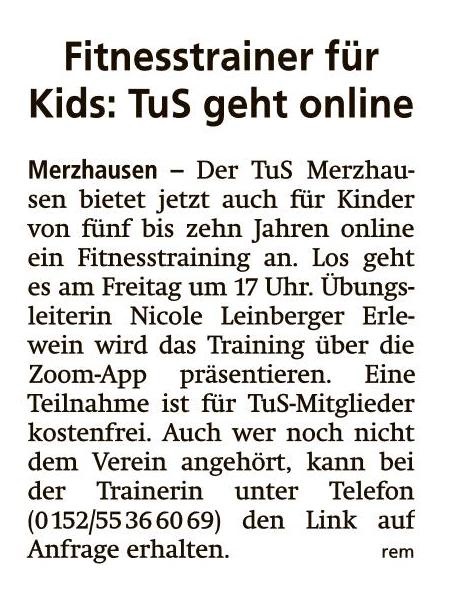 Fitnesstrainer für Kids: TuS geht online