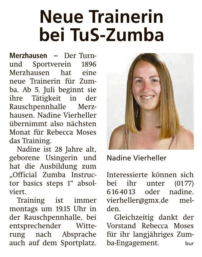 Neue Trainerin bei TuS-Zumba