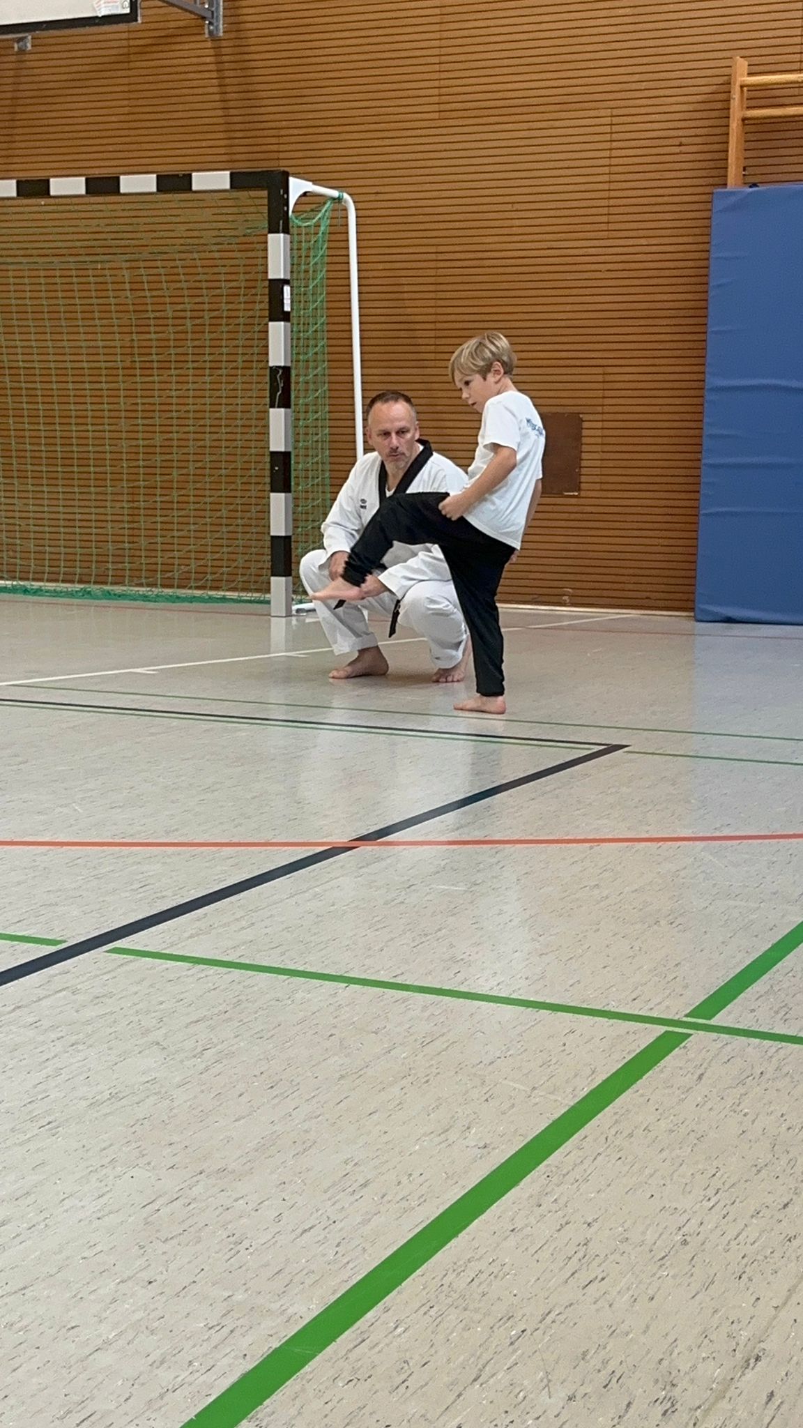 Unser Ziel: Die Kinder spielerisch an Taekwondo heranführen, ihr Selbstvertrauen stärken, Koordination und Disziplin fördern – und natürlich jede Menge Freude am Training wecken.